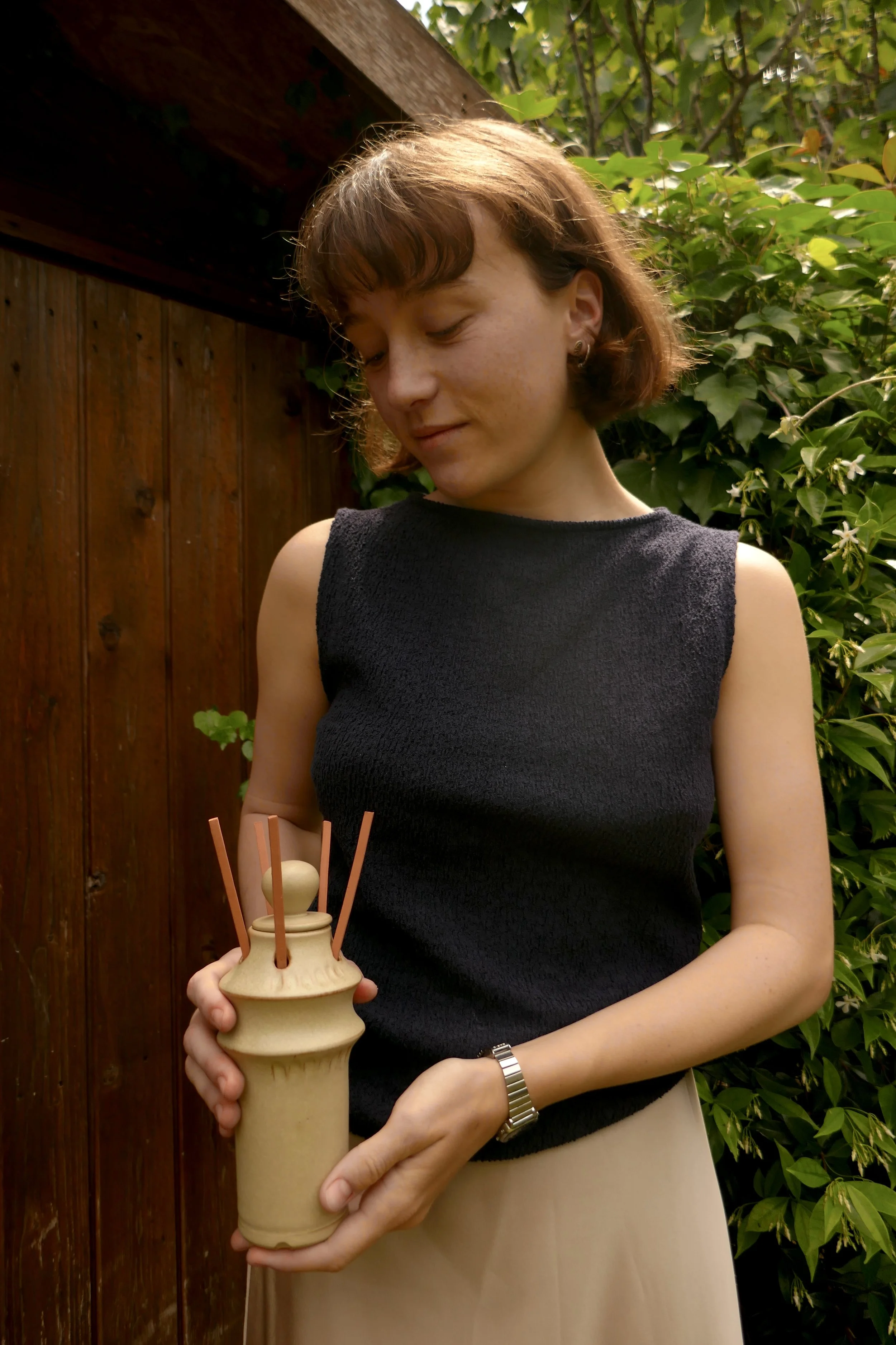 This handcrafted ceramic perfume diffuser was born from a personal memory, the warm, grounding scent of cedarwood that once filled my childhood home. It is more than just an object; it is a vessel of memory and emotion.